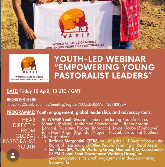 Join us os Friday 10 April for WAMIP youth-led webinar on “Empowering Young Pastoralist Leaders”!